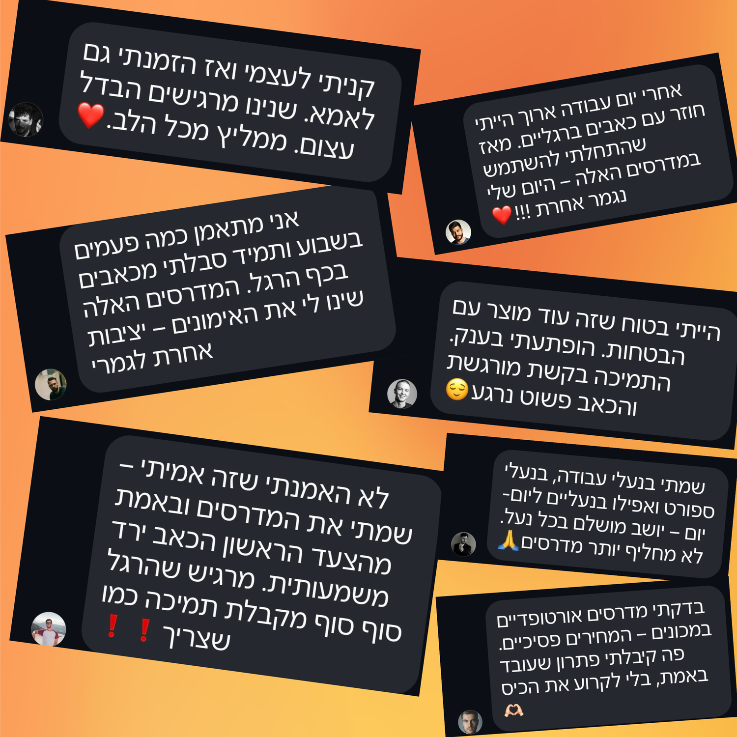 מהלקוחות דיווחו כי כבר בשימוש הראשון במדרסים, חשו הקלה משמעותית בכאבים.